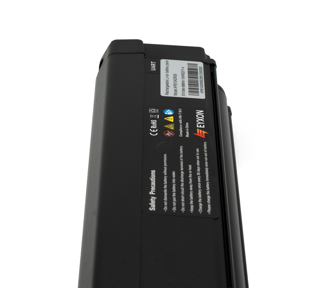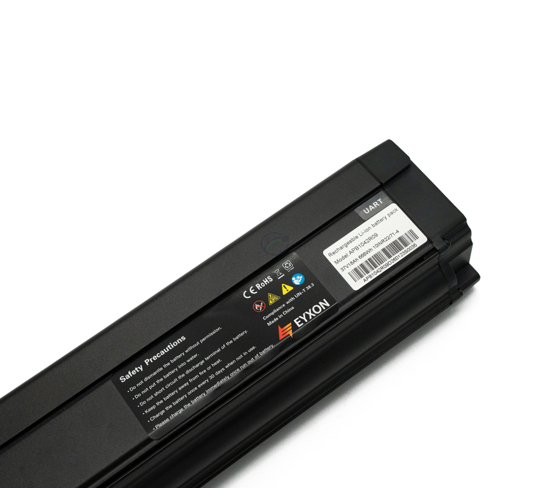 La batterie Amslod Intube UART 37V 18Ah est une batterie in-frame compatible de la marque EYXON. Cette batterie convient à différents e-bikes Amslod utilisant un système de communication UART et un boîtier de batterie de type GX-20. La batterie est entièrement intégrée dans le cadre, ce qui permet de préserver le design original du vélo et d’offrir une meilleure protection contre l’humidité, la saleté et les dommages. Grâce au principe Plug & Play, la batterie est simple à utiliser : chargez la batterie, insérez-la dans le cadre et vous pouvez partir immédiatement.
