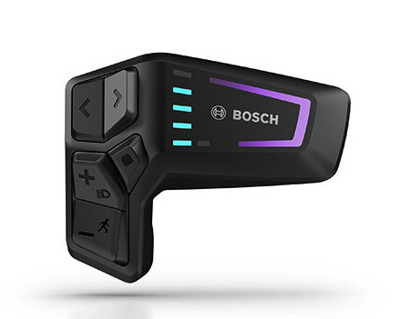 L'unité de commande LED actualisée permet à l'utilisateur de gérer facilement le mode de conduite. Le niveau de la batterie est indiqué par 5 lignes superposées. Le mode de conduite sélectionné est indiqué par différentes couleurs, qui sont entourées d'une bande de LED autour du logo Bosch (voir image).