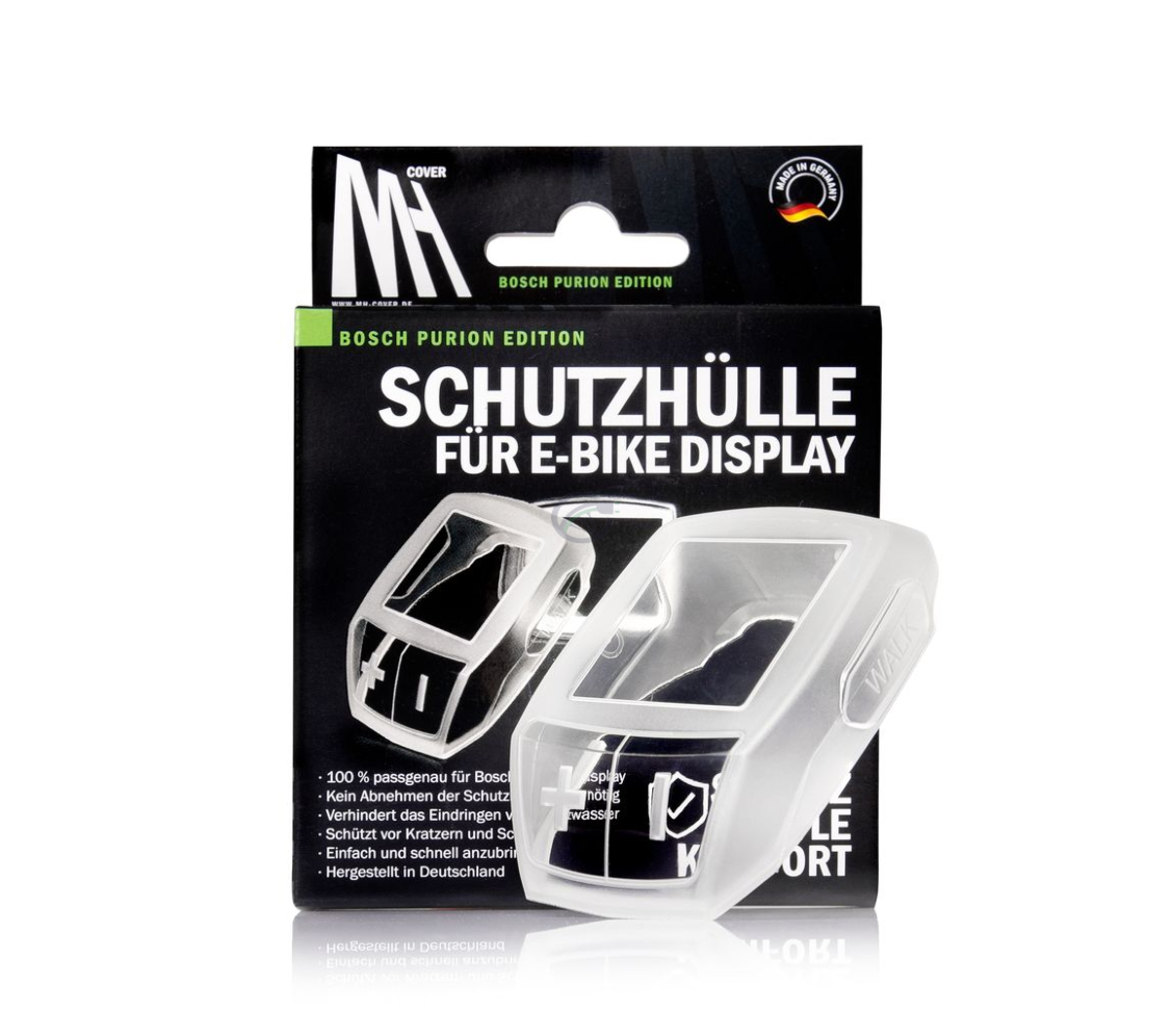 La housse est fabriquée en plastique flexible (PVC), un matériau durable, résistant à l’usure et dimensionnellement stable. Grâce à son ajustement précis, l’écran reste entièrement opérationnel et parfaitement lisible. L’installation est simple et rapide, sans outil. Une fois en place, la housse n’a plus besoin d’être retirée : votre écran reste continuellement protégé, que vous rouliez, transportiez ou stationniez le vélo.