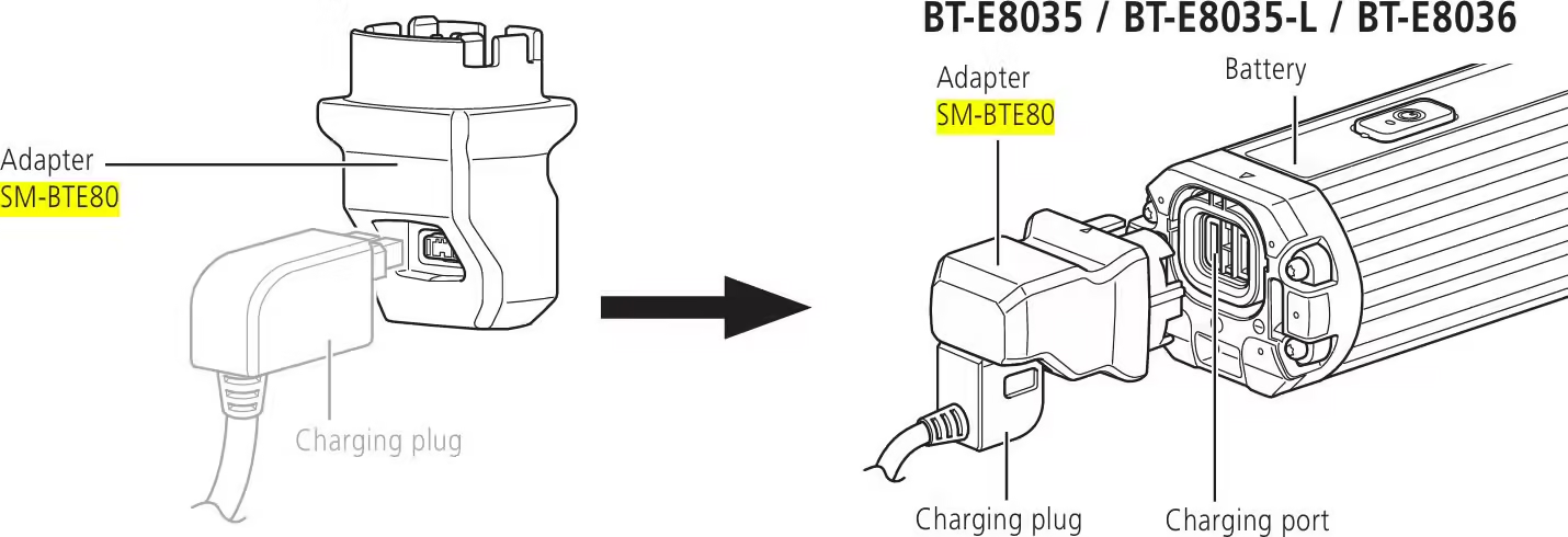 L’adaptateur assure une connexion stable entre le chargeur Shimano et la batterie, garantissant des performances de charge fiables. Grâce à sa construction en plastique durable, le SM-BTE80 résiste bien à une utilisation quotidienne.