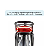Attention : Il existe deux versions de la batterie Stella Type 3 d'origine : la CANBUS BMS et la LINBUS BMS. La LINBUS BMS a le même feu arrière que cette batterie compatible EYXON, mais cette batterie ne convient pas pour remplacer la version LINBUS. En revanche, la version CANBUS peut être remplacée par la batterie compatible EYXON. La différence entre ces deux batteries est visible au niveau du feu arrière. La version CANBUS possède un feu arrière différent de celui de cette batterie compatible. Consultez les photos du produit pour plus d’informations et pour vérifier si cette batterie compatible peut remplacer celle de votre vélo actuel.